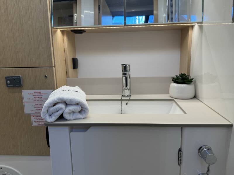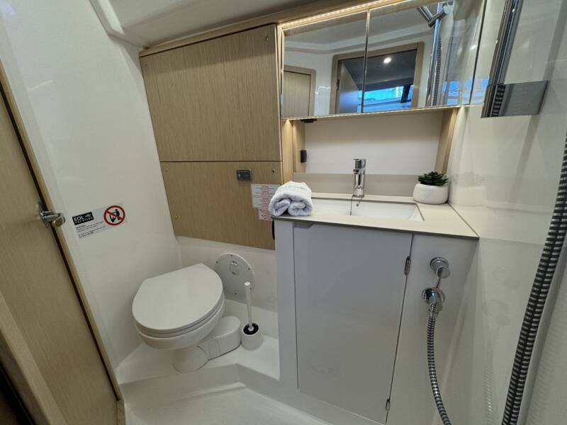 Tato jachta je jedinečná díky Klimatizace, Koupací platforma, Bow thruster, GPS mapový plotter - kokpit, Topení, Elektrické WC, Solární panely.