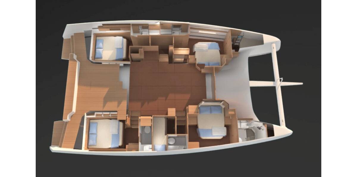 Katamaran Dufour 48 Catamaran "Dreamland" befindet sich in Marina Split - ACI, Kroatien. Gebaut im Jahr 2022, es bietet Unterkunft für 12 Personen in 5 + 1 Kabinen, mit 5 + 1 Toiletten und Dusche(n).