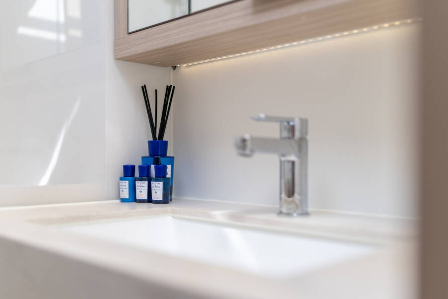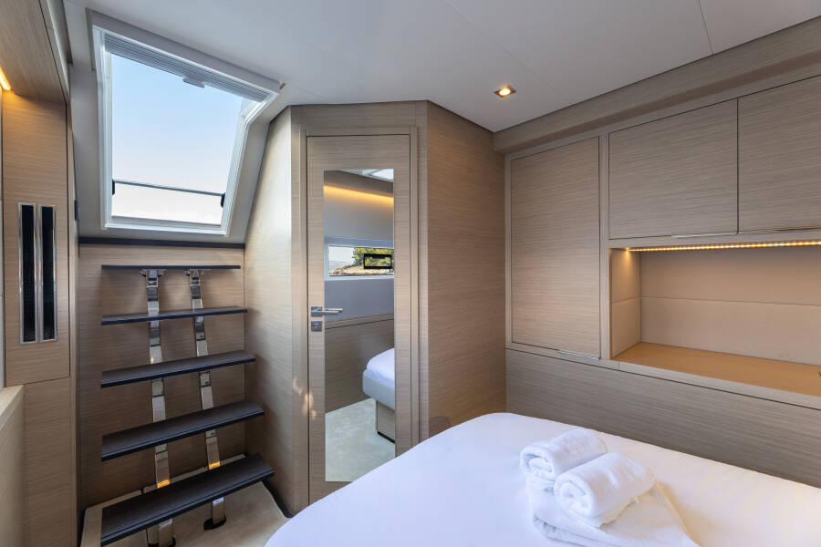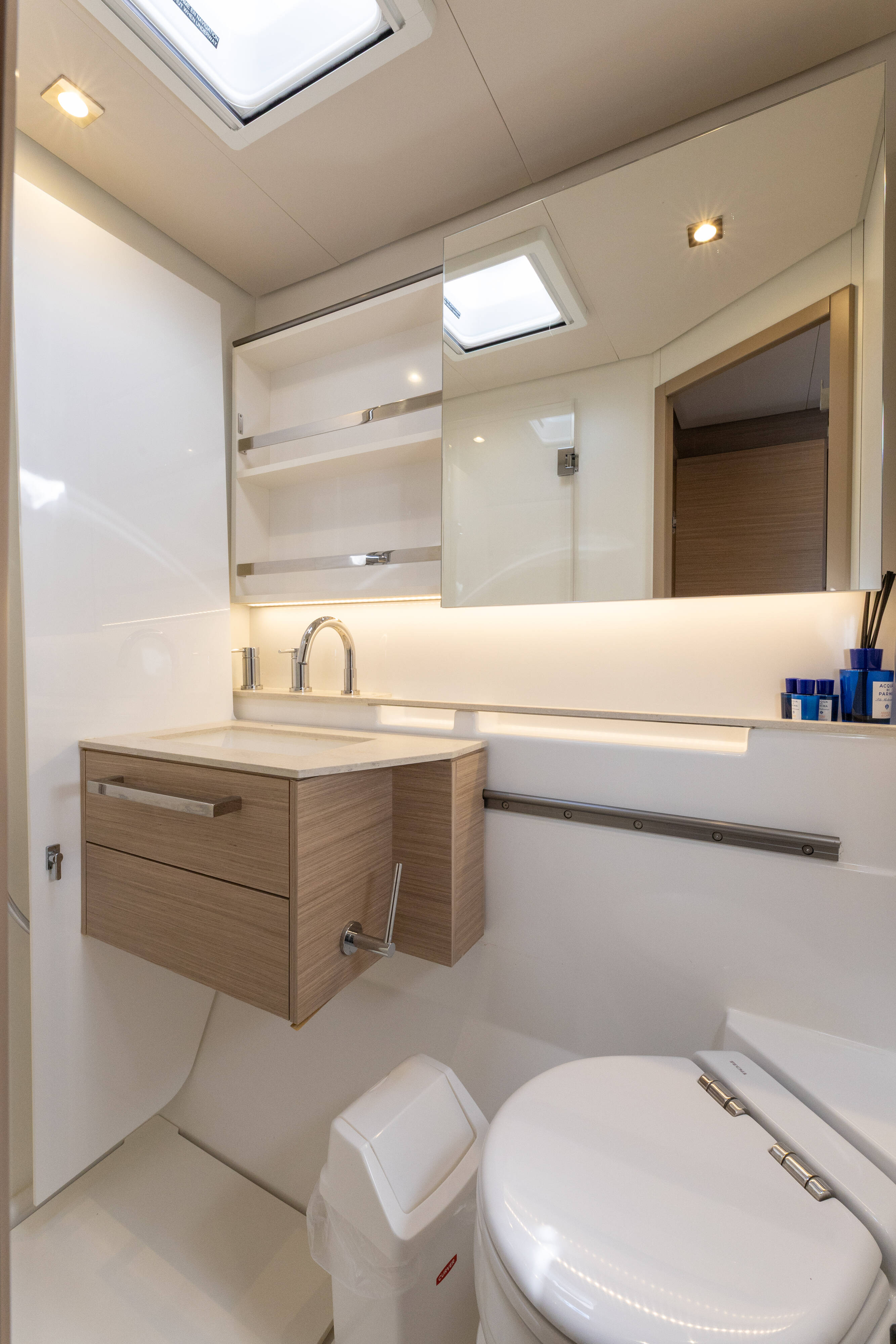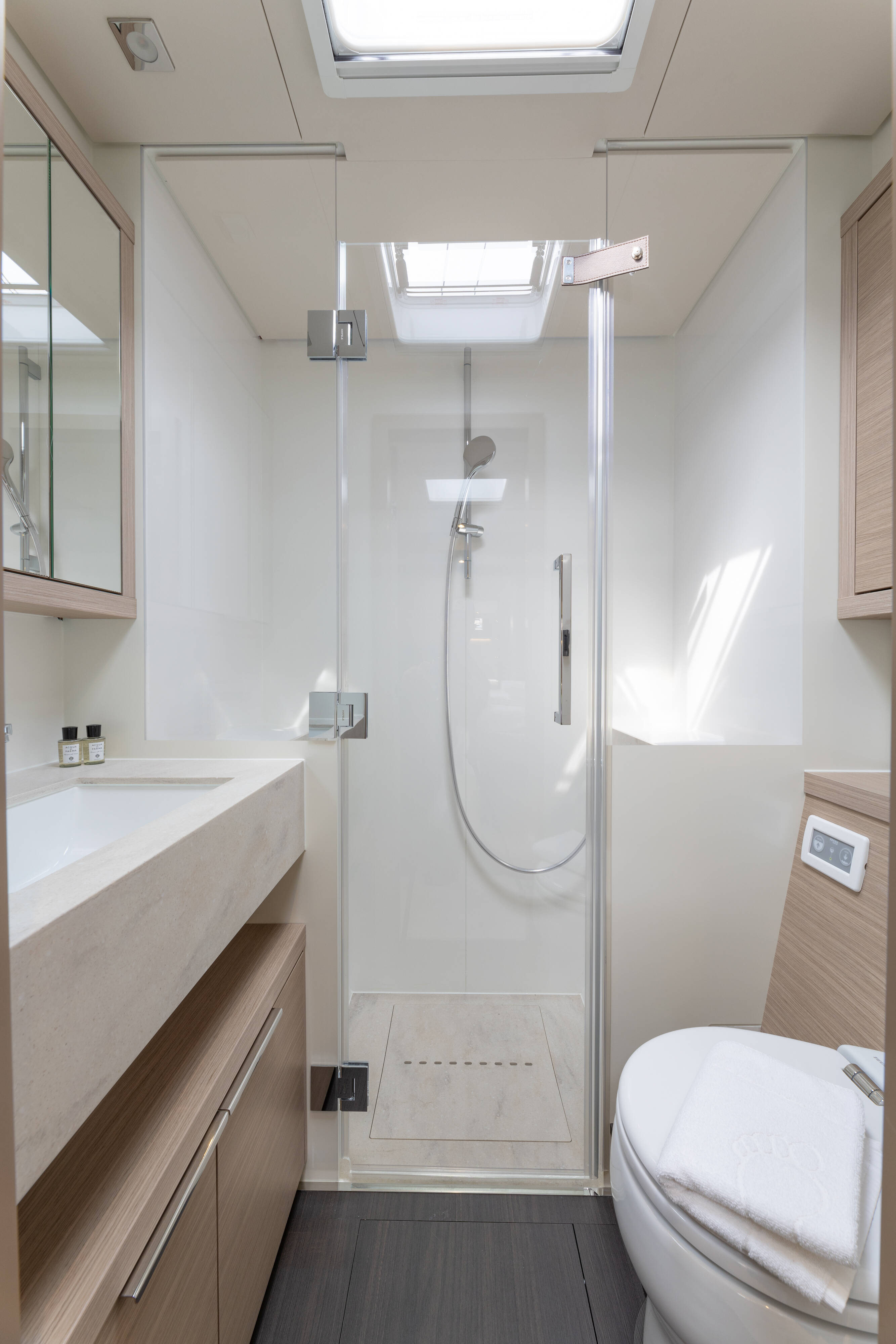Ce qui rend ce yacht spécial, c’est Air conditionné, Générateur, Levage hydraulique de la plateforme de natation, Dessalinisateur, Machine à glaçons, Inverseur, TV, WC électrique.