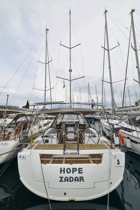 Jedrilica Oceanis 41 "Hope" se nalazi u Marina Tankerkomerc, Zadar, Hrvatska. Proizveden godine 2013, omogućuje smještaj za 8 osoba u 3 kabina, s 2 wc-a i tuševa.