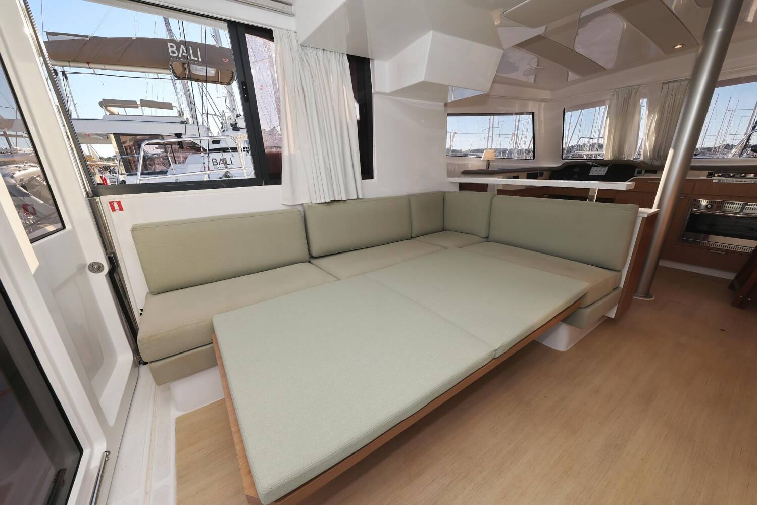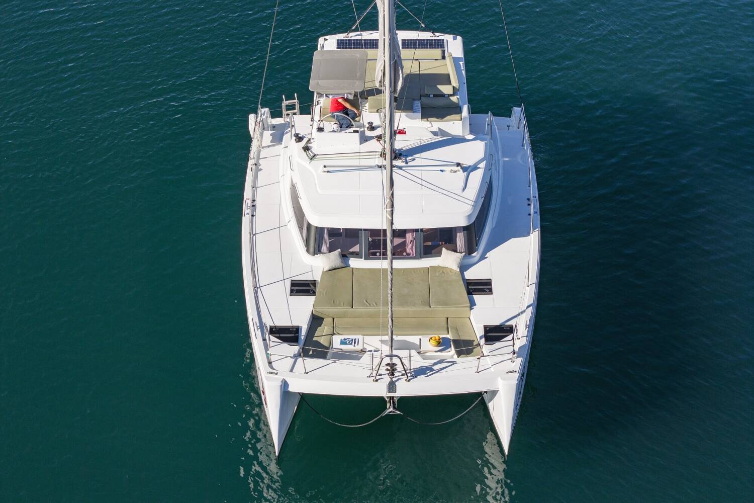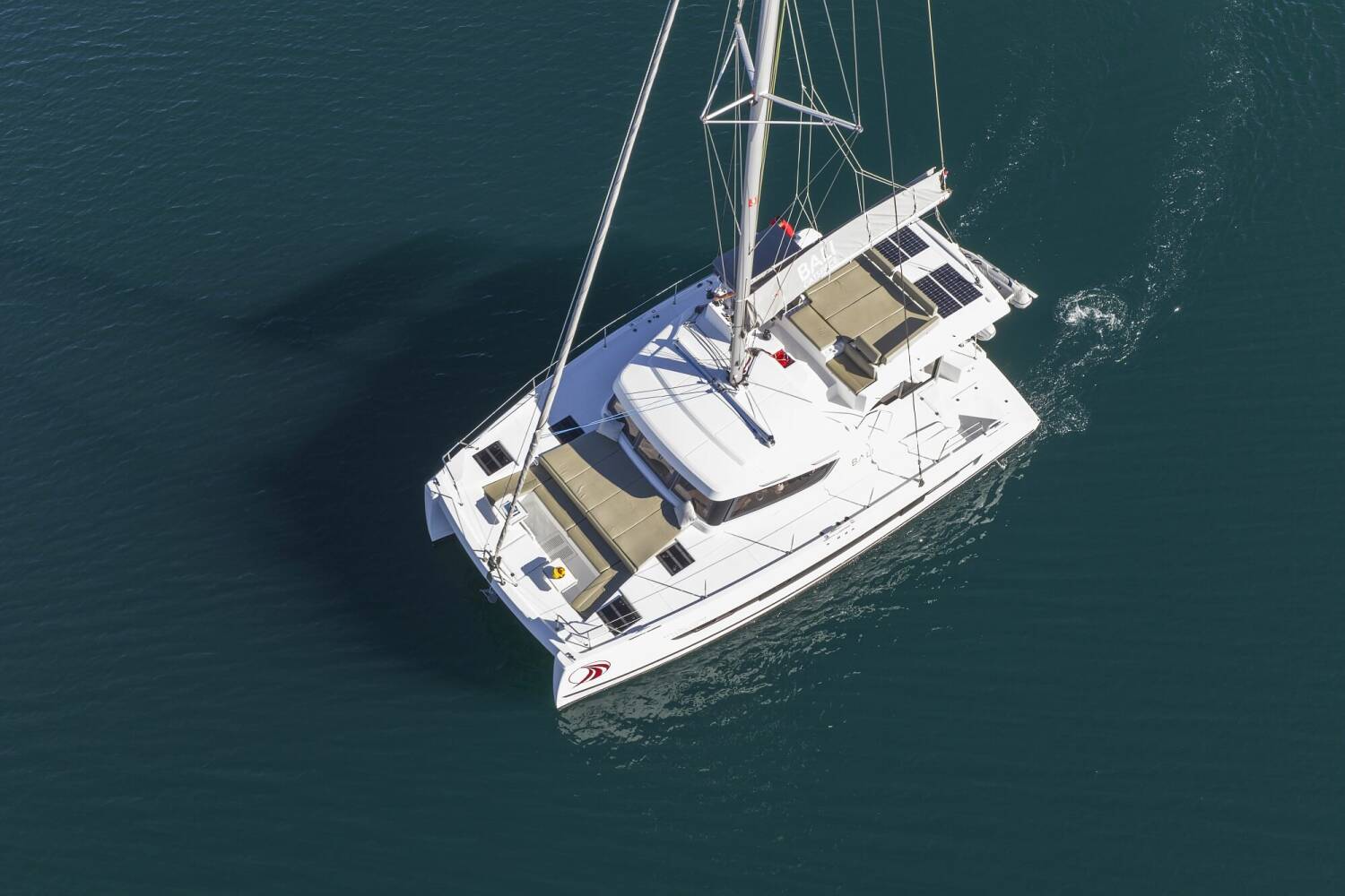 Bali Catspace "Rolling Stone" je opremljen s full batten glavnim jedrom, samopreletni flok tipom genoe te Bimini top, Automatski pilot.