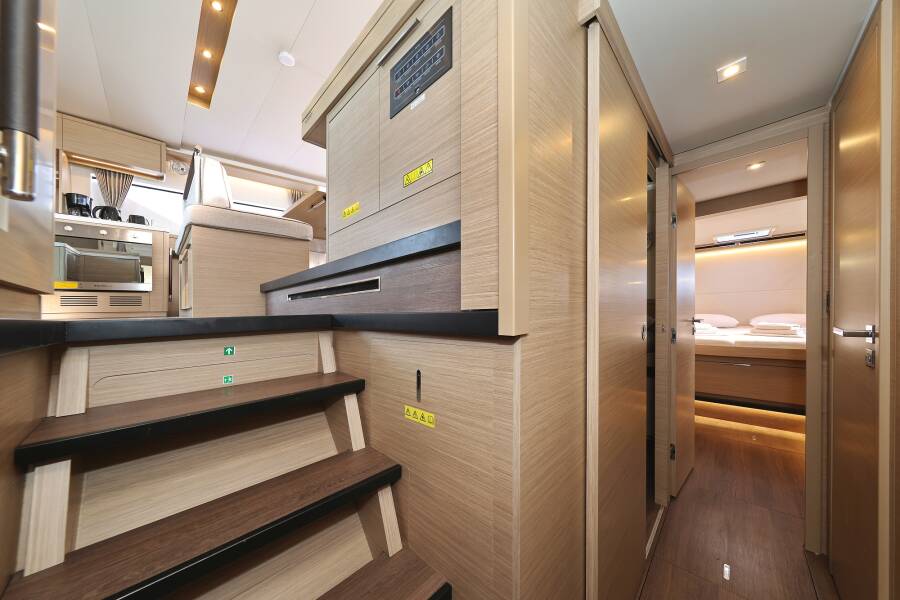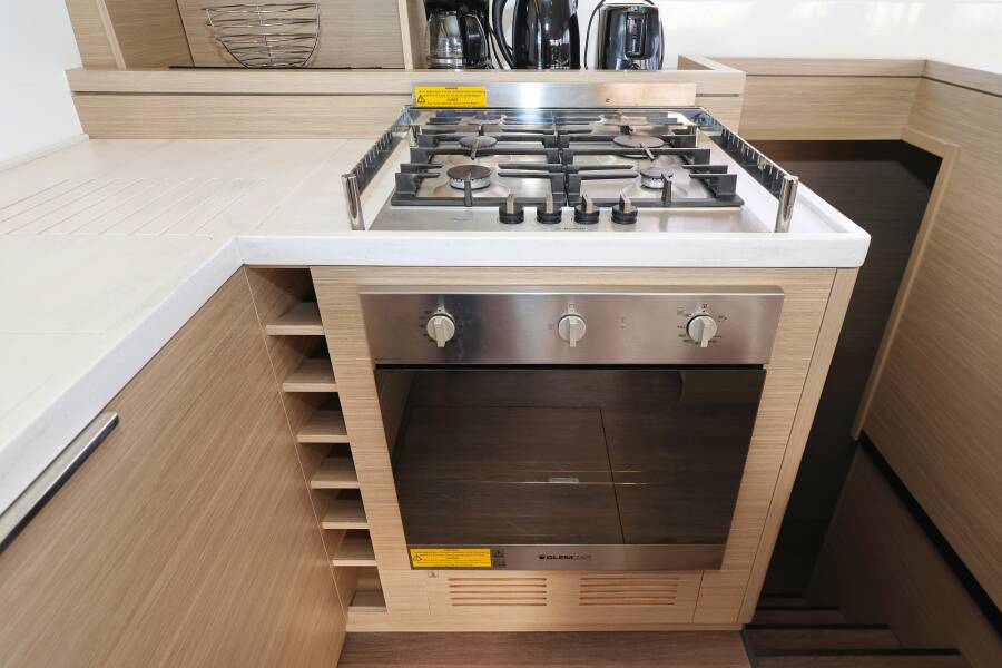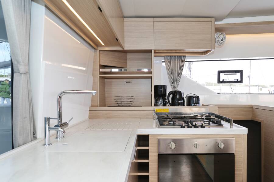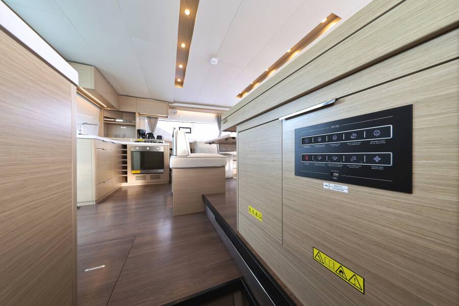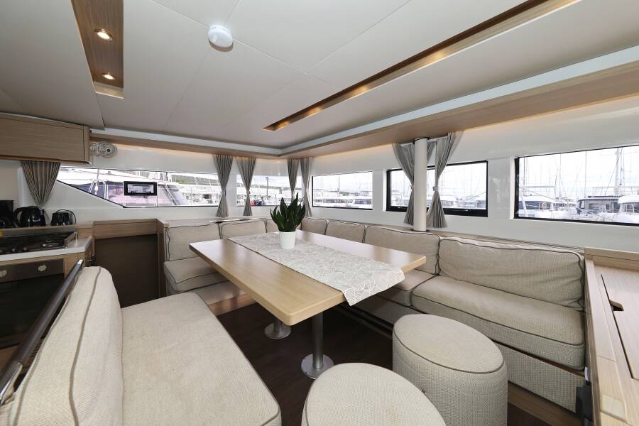 Lagoon 51 "Zarathustra" je opremljen s furling/roll (samonavijajuće) glavnim jedrom, tipom genoe te Automatski pilot.