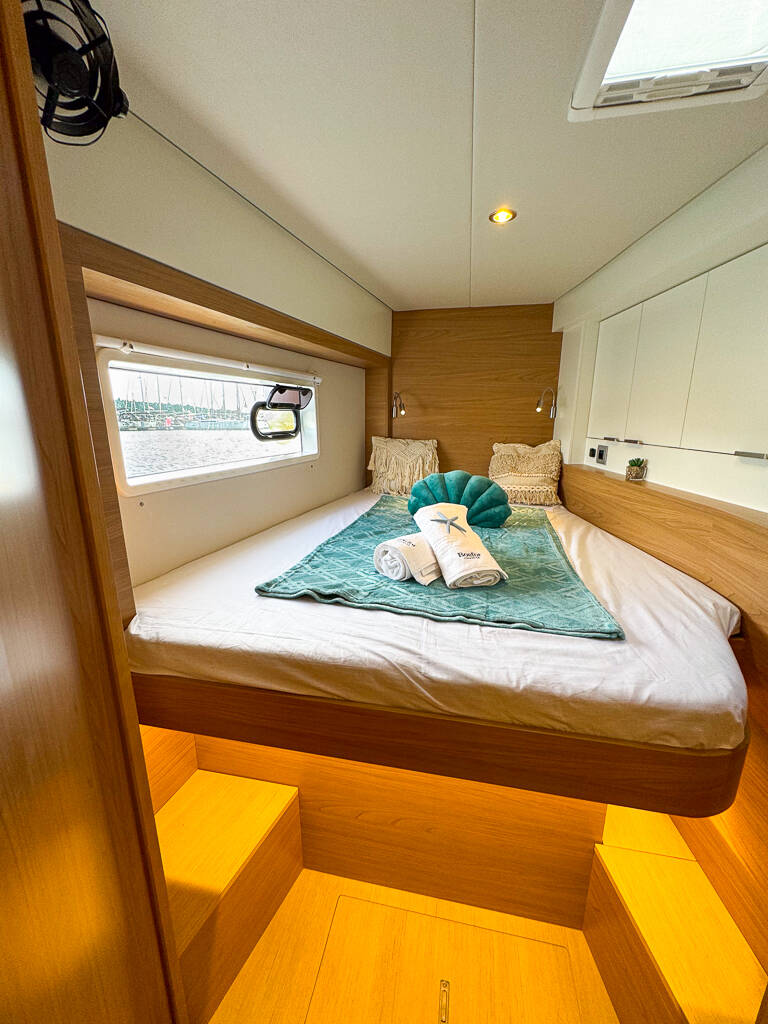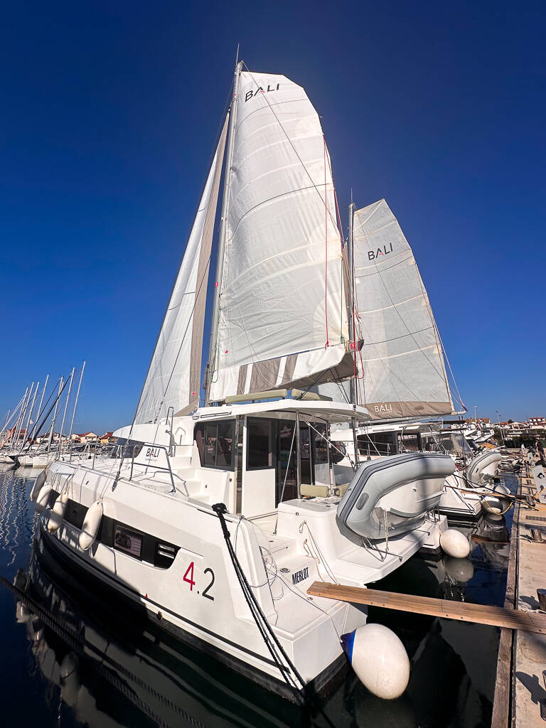 Catamarano Bali 4.2 "Merlot" se si trova in Marina Pirovac, Croazia. Costruita nell’anno 2024, offre alloggio per 8 + 2 + 1 persone in 4 + 1 cabine, con 4 + 1 bagni e doccia(e).