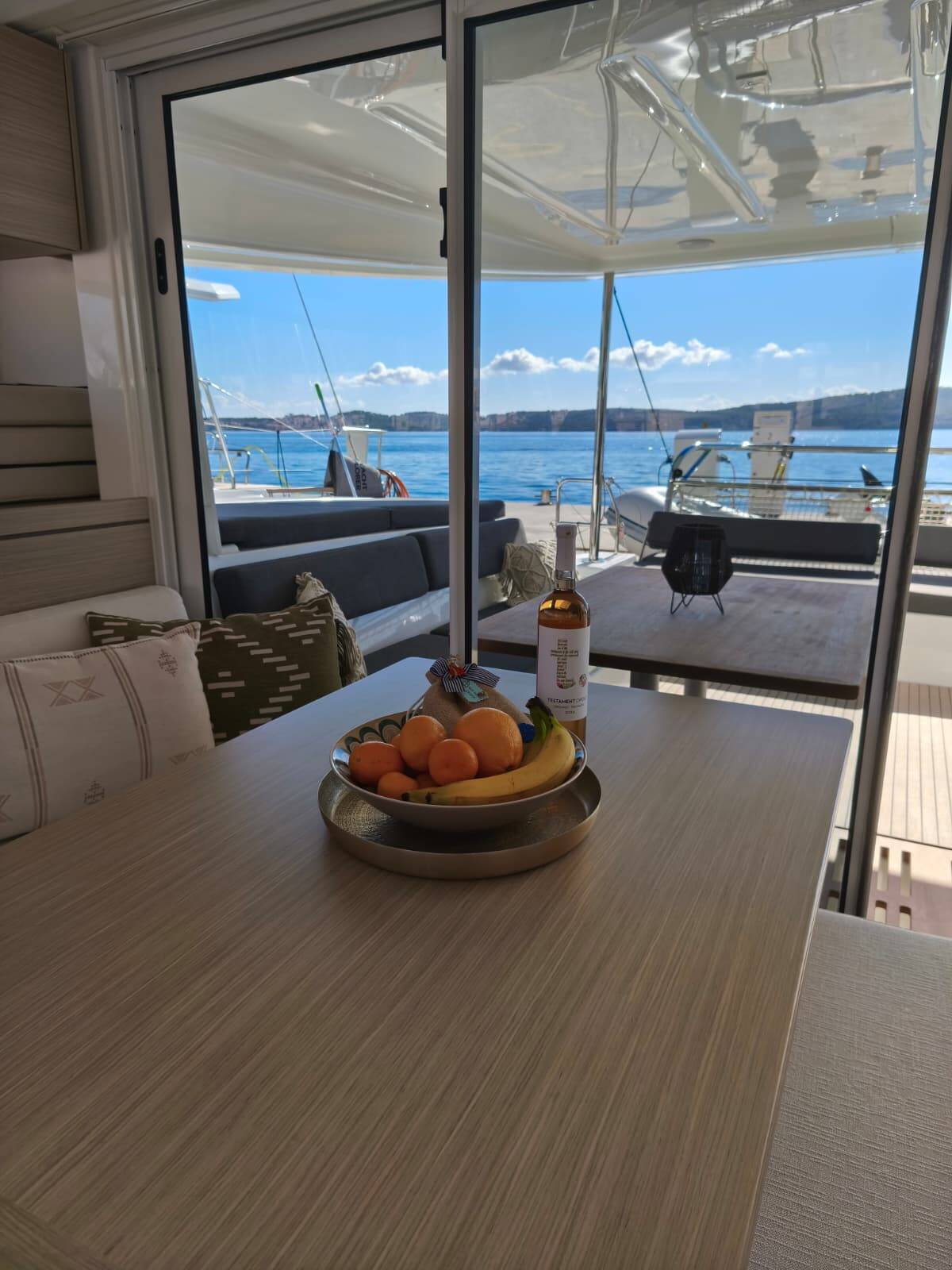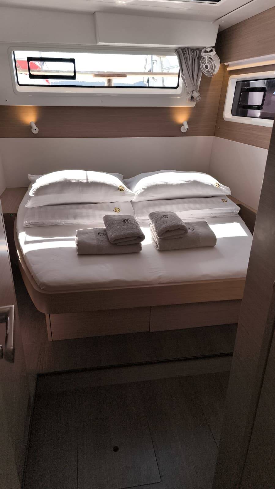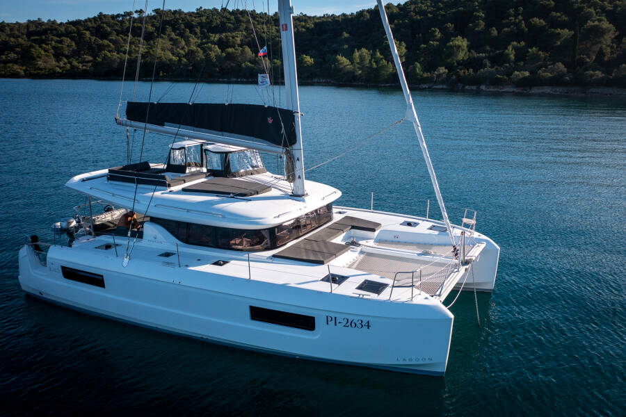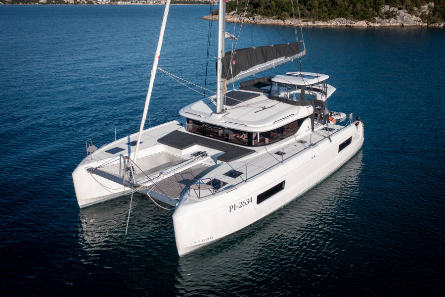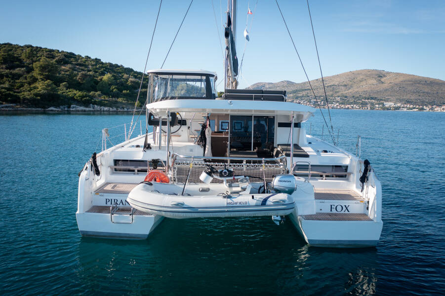 Catamaran Lagoon 43 "Fox" ligt in Trogir, Yachtclub Seget (Marina Baotić), Kroatië. Gebouwd in het jaar 2025, biedt accommodatie voor 12 mensen in 4 + 2 hutten, met 4 toiletten en douche(s).