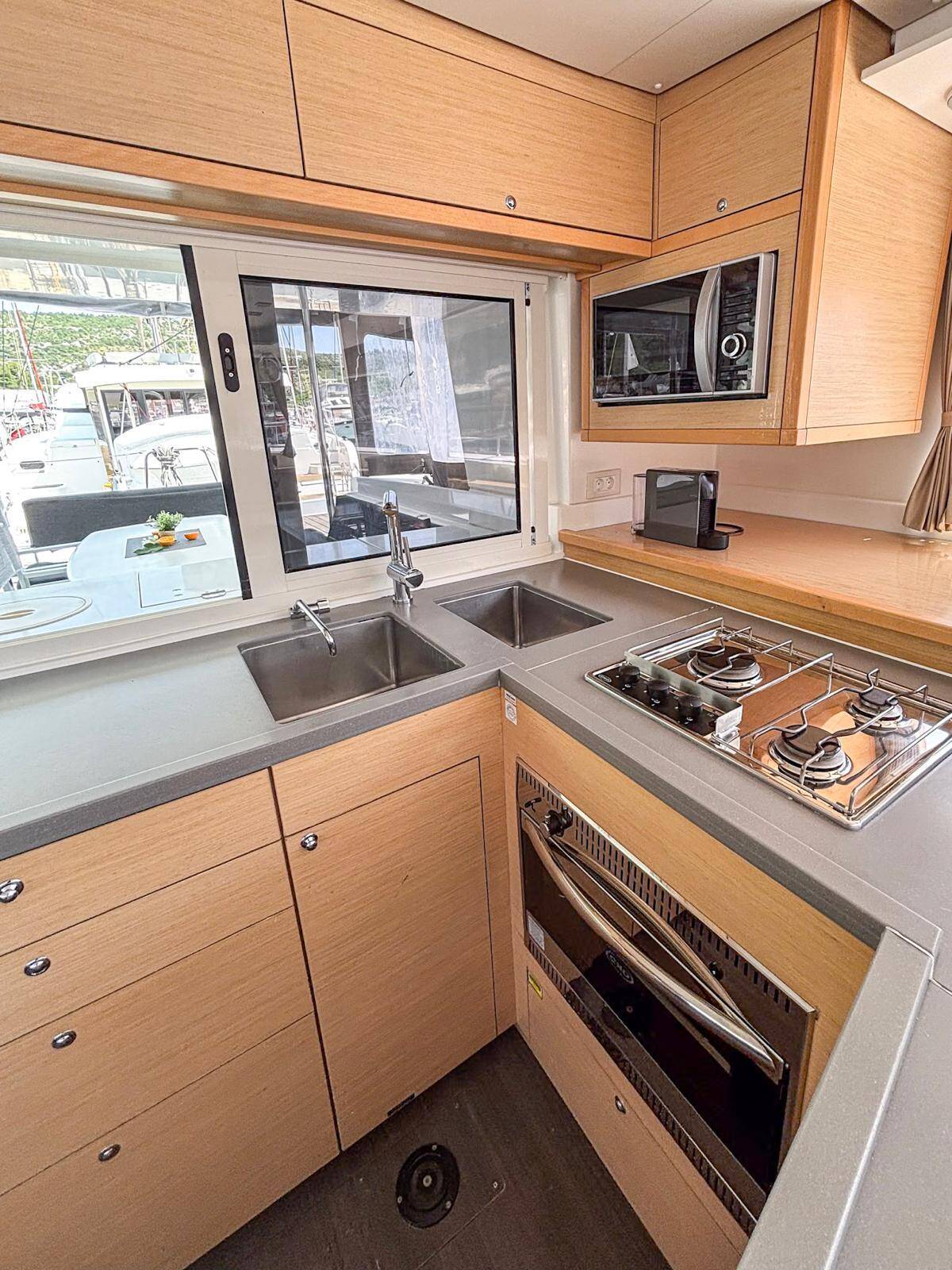 Catamaran Lagoon 450 F "Red Twin" ligt in Marina Kremik, Primošten, Kroatië. Gebouwd in het jaar 2016, biedt accommodatie voor 12 mensen in 4 + 2 hutten, met 4 toiletten en douche(s).