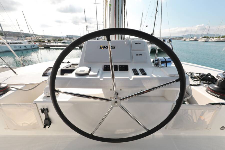 Lagoon 50 "Ugly Duck" is uitgerust met Doorgelat Zeil grootzeil, Rolgrootzeil genua type en GPS kaart plotter, Bimini-top, Autopilot.