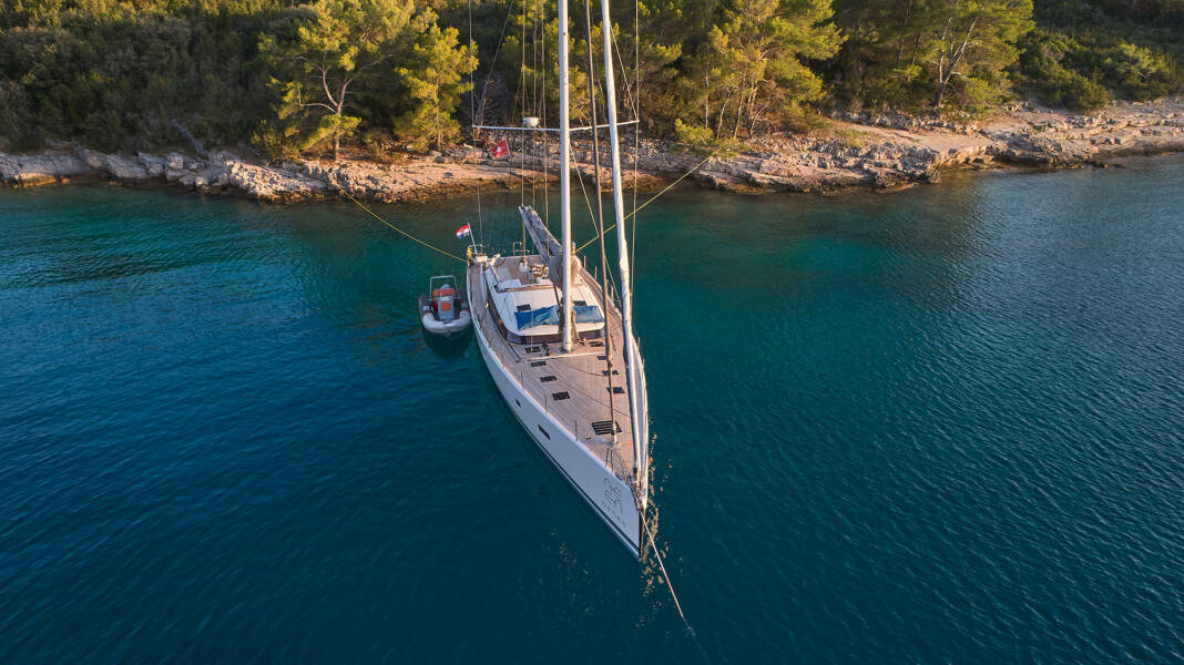 Zeiljacht CNB 76 "Aenea" ligt in Marina Kastela, Kroatië. Gebouwd in het jaar 2017, biedt accommodatie voor 8 mensen in 3 + 1 hutten, met 4 + 1 toiletten en douche(s).