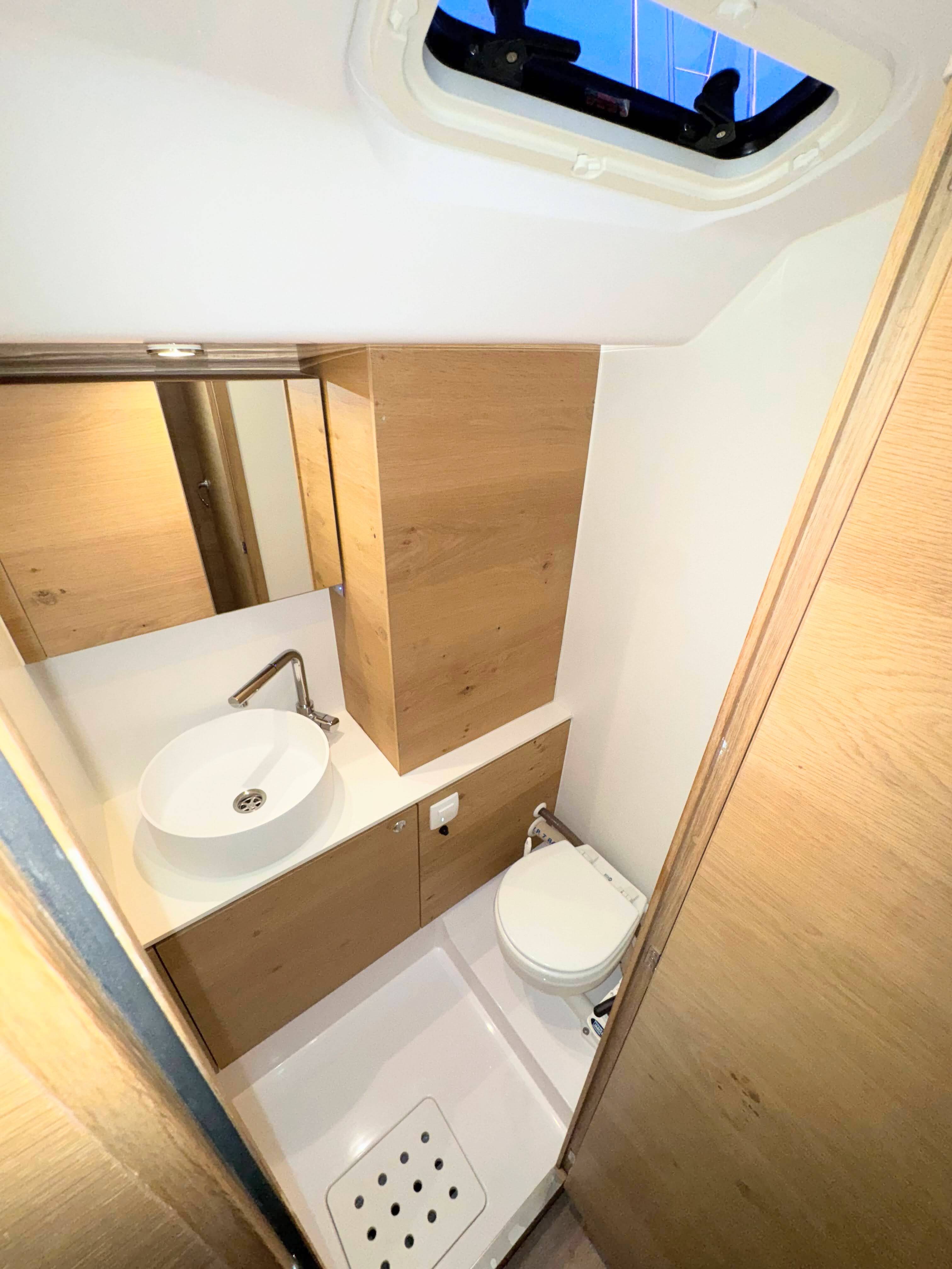 Wat dit jacht bijzonder maakt is NESPRESSO-koffiezetapparaat, Airconditioning, Zwemplatform, Boegschroef, GPS-kaartplotter - cockpit, Verwarming, Omvormer, TV.