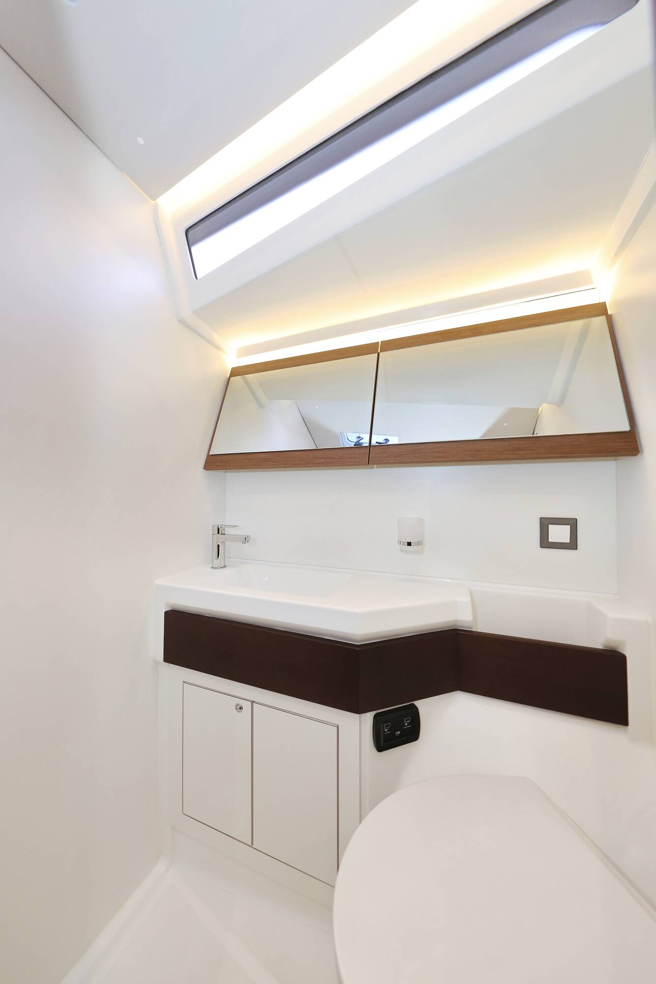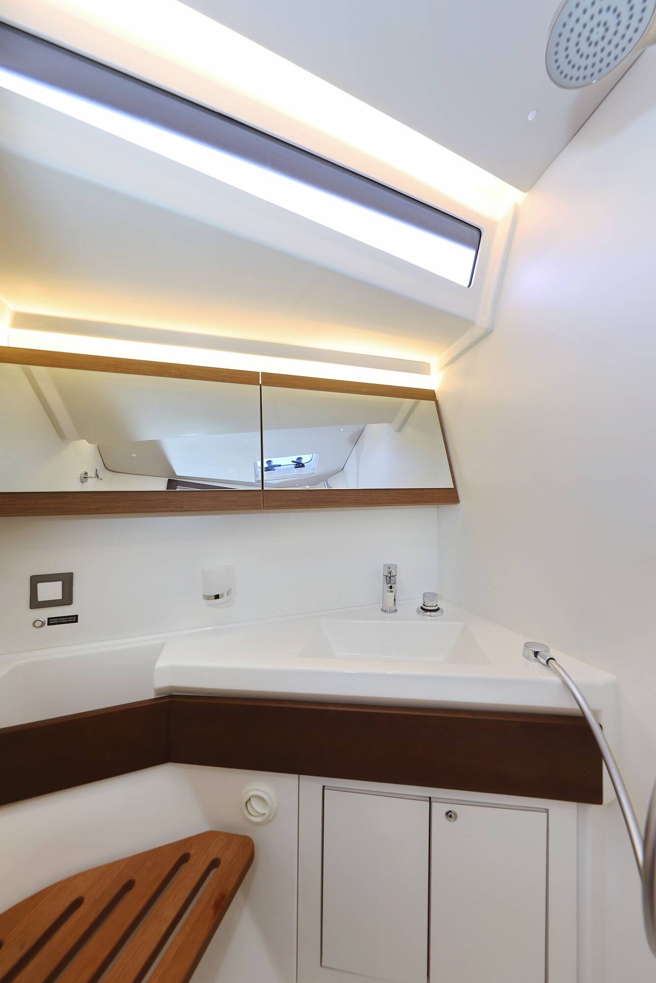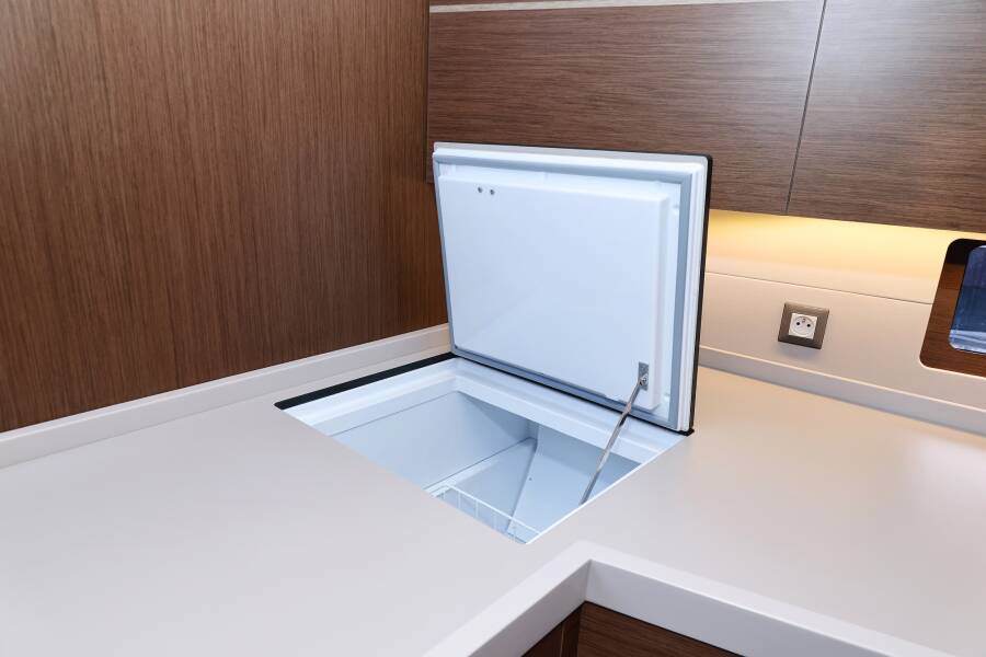 Wat dit jacht bijzonder maakt is Buitenboordmotor 2,3 PK, Airconditioning, Zwemplatform, Boegschroef, Verwarming, Electrisch toillet, Zonnepanelen.