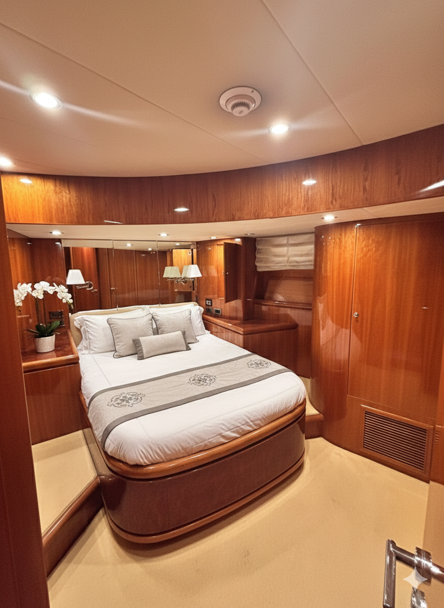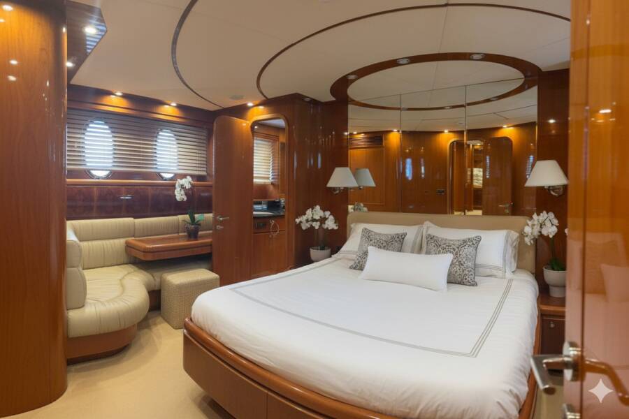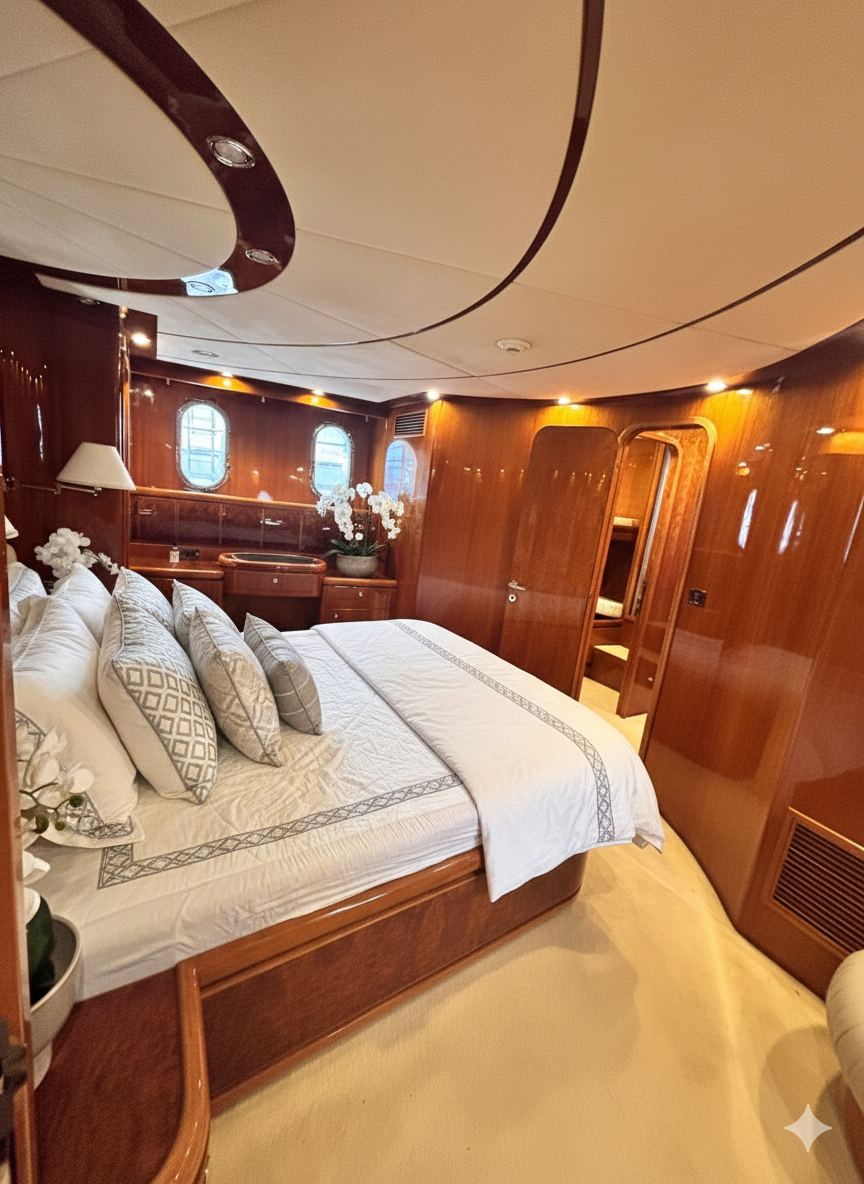 Co wyróżnia ten jacht, to Klimatyzacja, Generator, Ster strumieniowy, TV + DVD.
